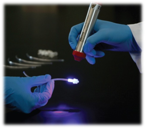 UV光固化医疗级别胶水,其优点是在UV光照射条件下,在线快速固化,根据材质组分可选择丙烯酸酯类型,有机硅类型和环氧类型的产品。